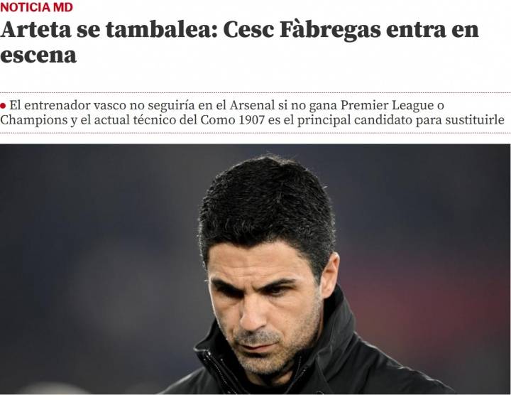 从媒体的消息来看,如果阿尔特塔因为无法夺冠被解雇的话,执教科莫的法布雷加斯将会成为球队新帅的热门人选。小法执教科莫的表现足够亮眼,不管是球队战术的打造,还是对年轻球员的培养都非常出色,再加上他此前曾经效力阿森纳的履历,似乎是阿尔特塔最好的接班人。不过,法布雷加斯是科莫的股东之一,想要说服他执教阿森纳,也并没有那么容易。